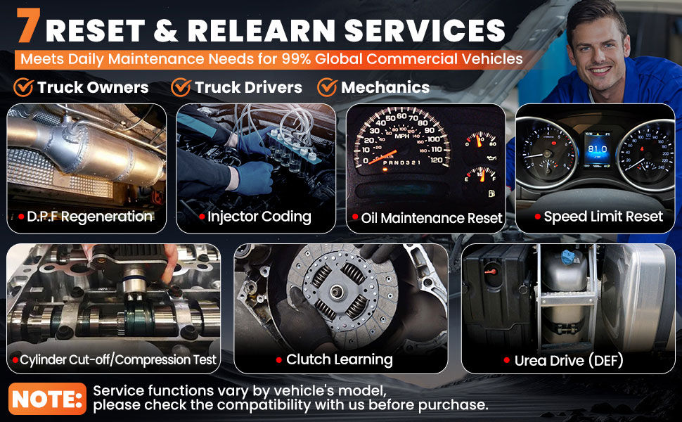 7 Maintenance Functions with Wide Compatibility for 99% of Global Trucks