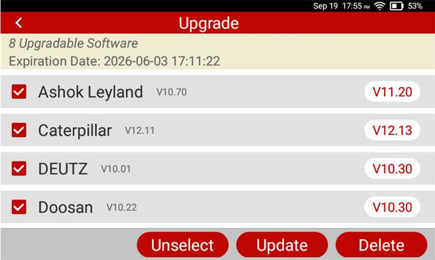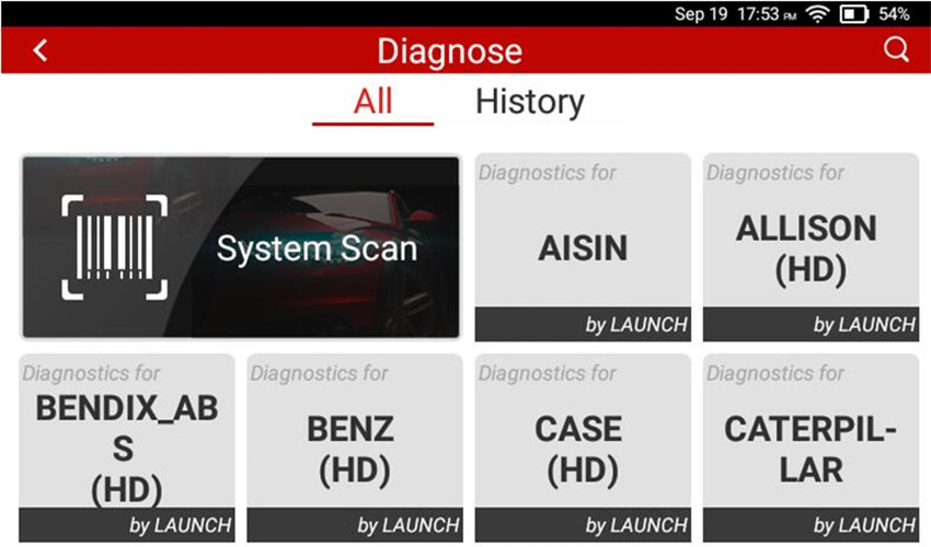 2.All System Diagnosis, supports read and clear DTC, live data, ECU information for all system in diesel truck, including Engine, Transmission, Drivetrain, ABS, ESP, Cluster, Suspension, Braking System, Cab Climate, Body Control, Instrument Panel, Fuel System etc.