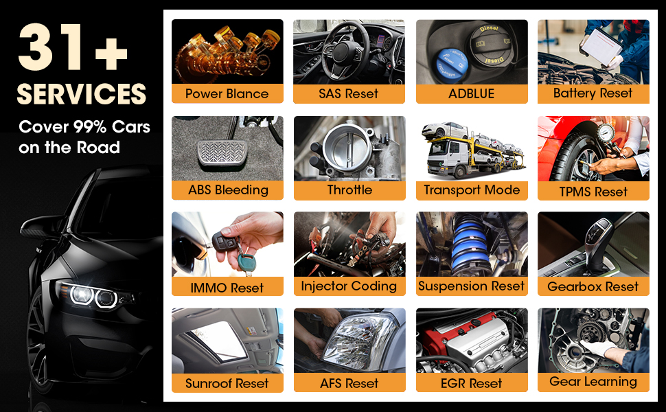 150+ Car Brands for all-system diagnostics & and special functions: most commonly-seen car brands in the U.S. like GM, Toyota, Honda, Chevrolet, Ford, Benz, BMW, Renault, Land Rover, Volvo, Chrysler, Jaguar, Kia, Hyundai, Nissan …