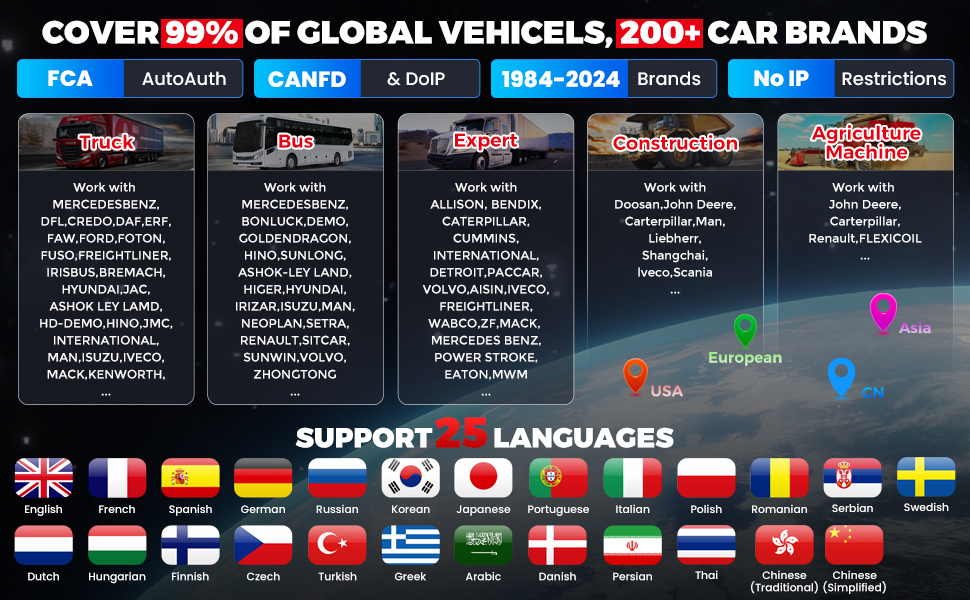 - 200+ BRANDS & 200000+ CARS SUPPORTED + 25 LANGUAGES + NO IP RESTRICTION+2 YEARS FRE-E UPDATE
